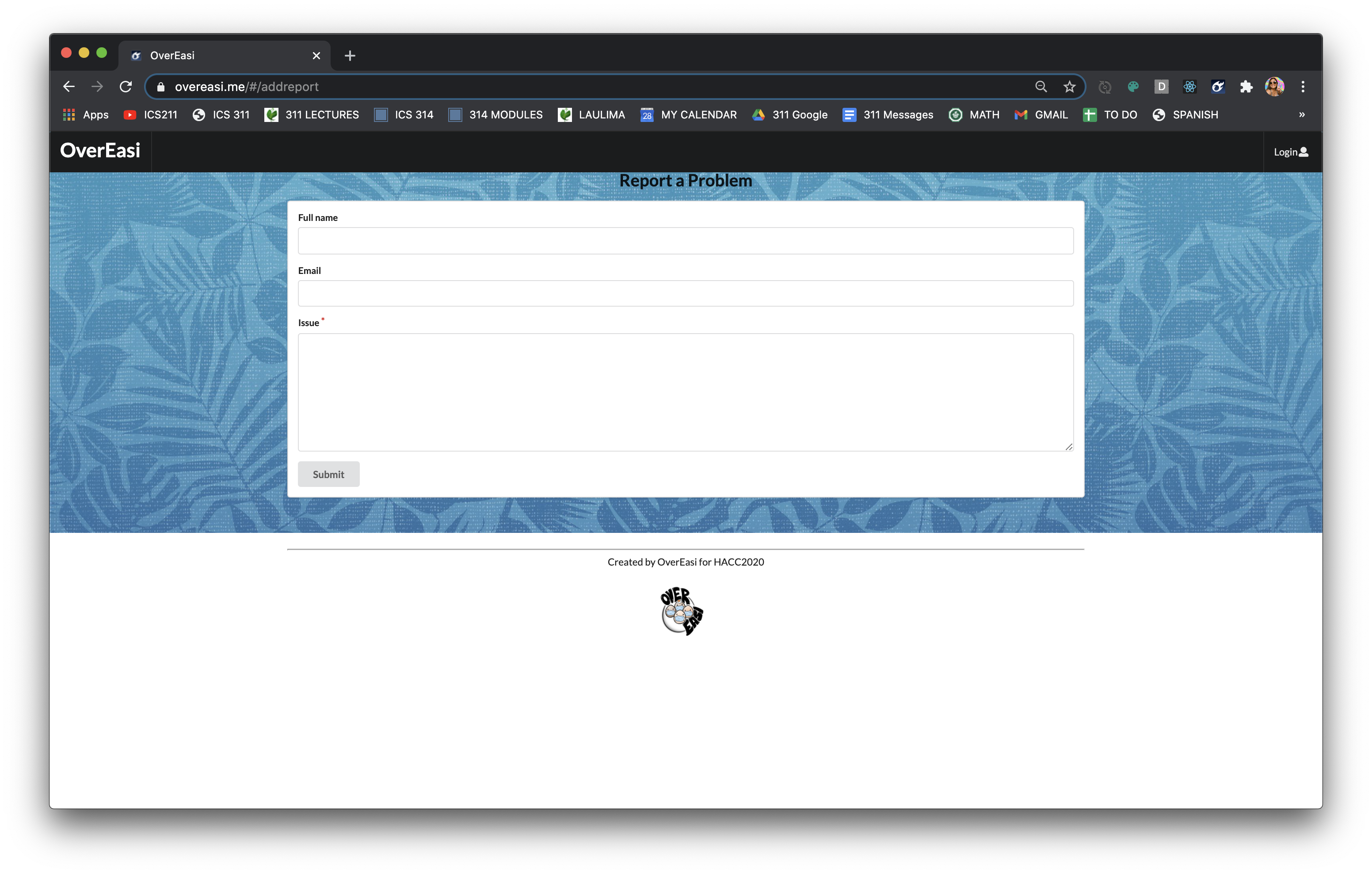 Might a user experience technical difficulties or an issue related to the OverEasi chatbot, they are able to submit a report.