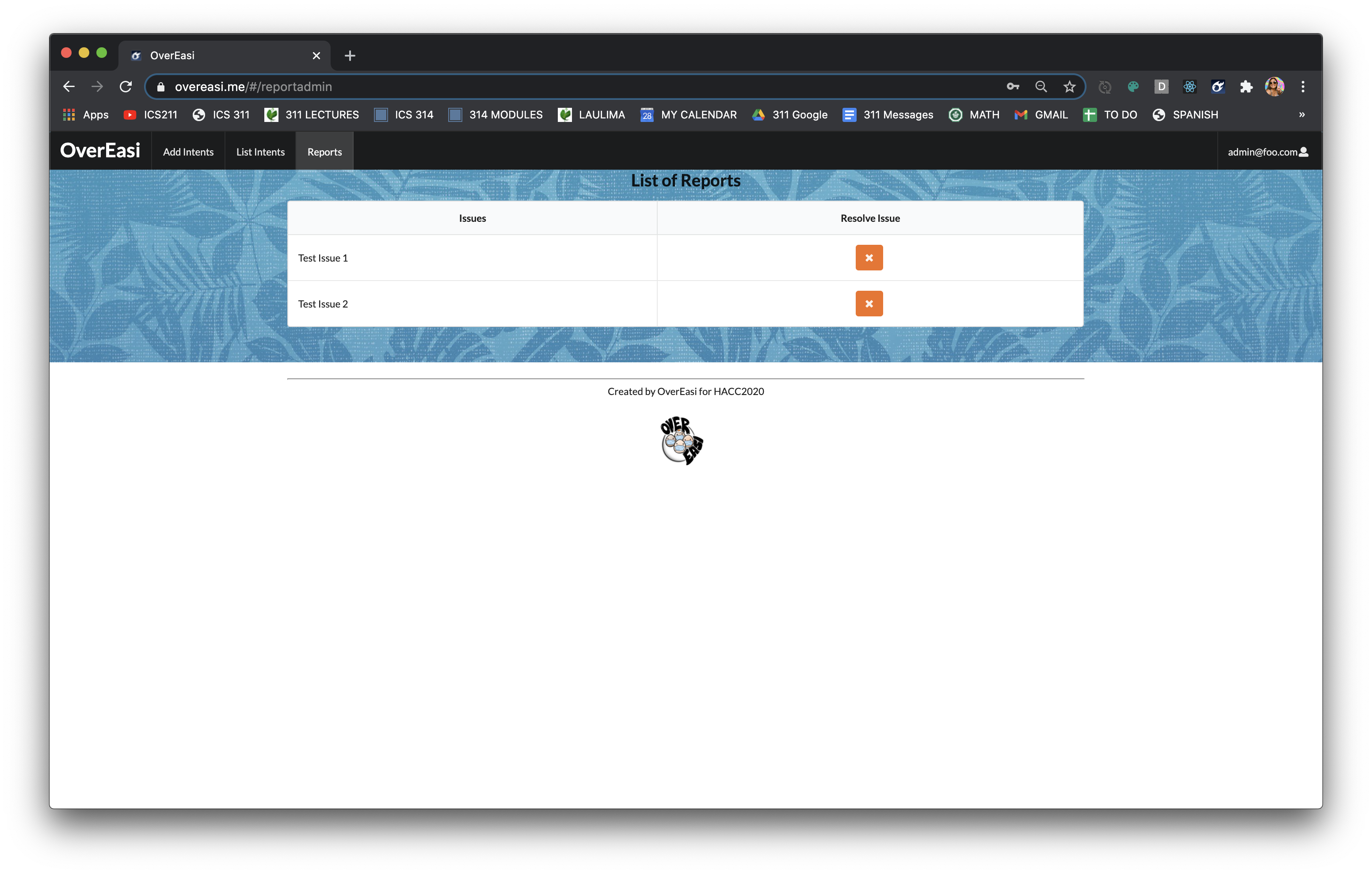 The admin will have access to all the reports submitted. They will have the ability to delete each issue listed if they have been resolved.